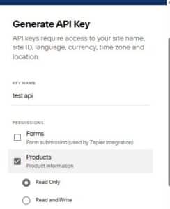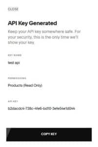 Step 4: Enter a name for your API key, select the “Products” permission, and choose “Read Only”