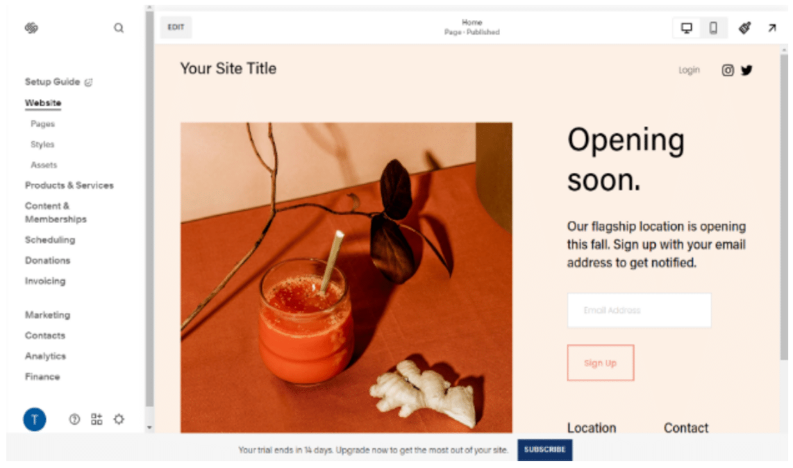 Navigate to the page where you want the chatbot to appear and click the Edit button to open the template editor.