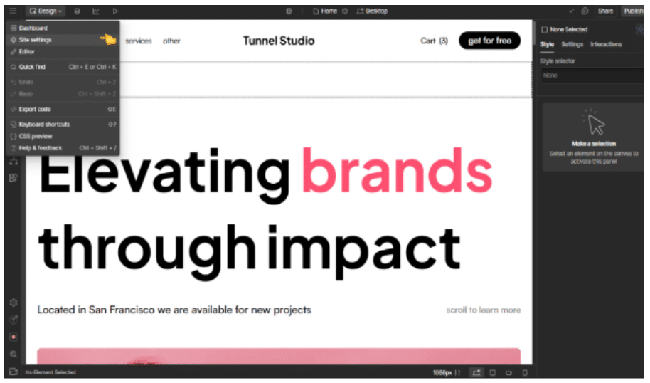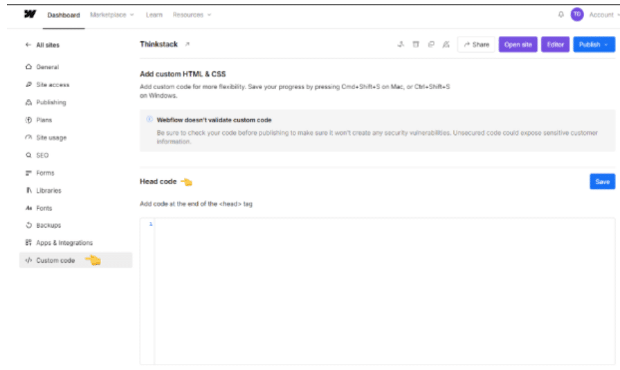 From your project dashboard, open the site you want to integrate and click Site Settings.
