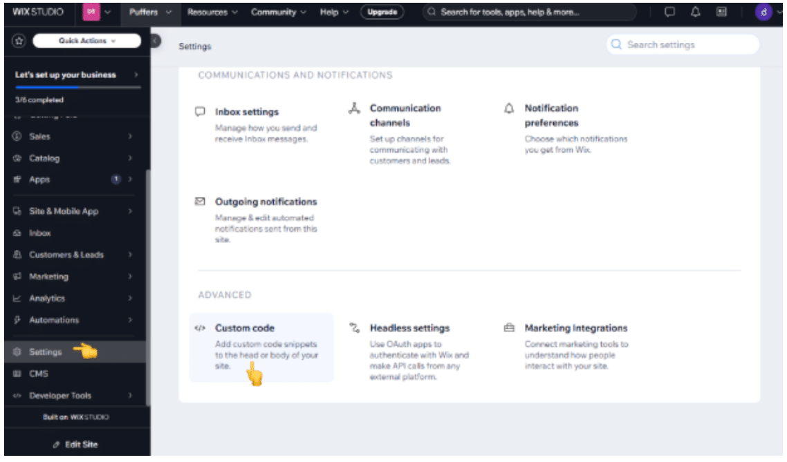 Step 3: Open Custom Code Settings
